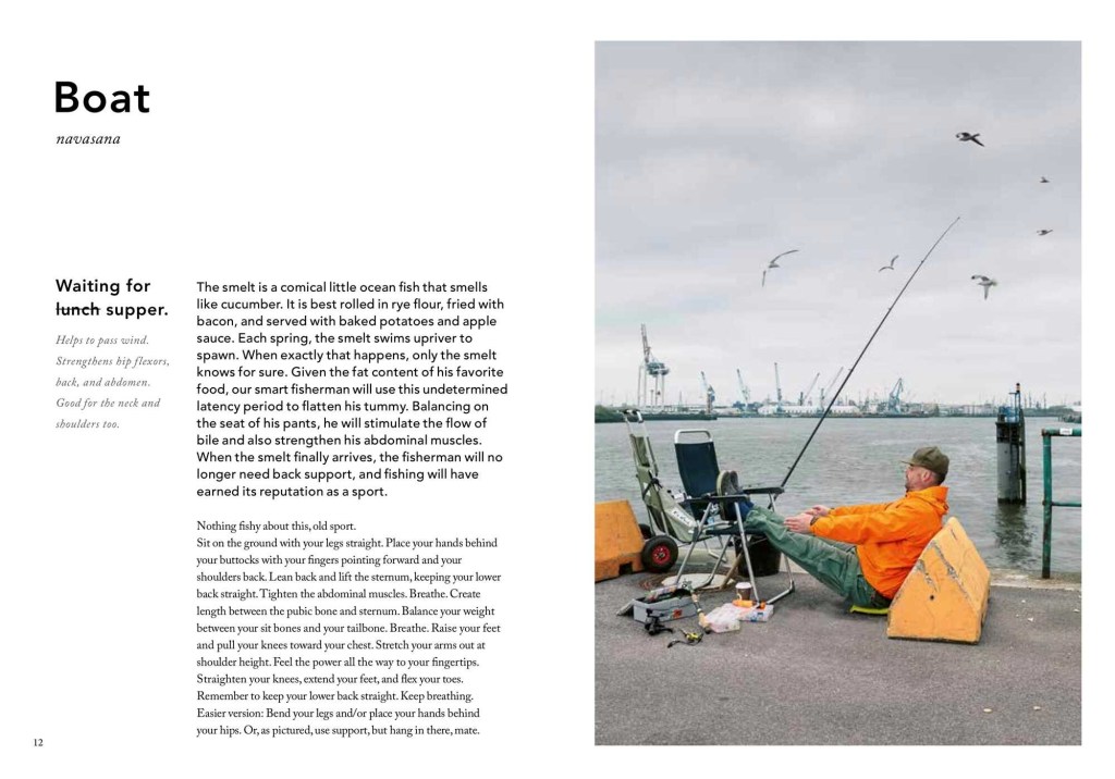 Il me semble retrouver quelque chose de cela ici : le corps physique, l’espace et l’incongruité de la scène. Ici « la posture idéale pour chaque pause inutile », évoque l’éditeur. Tout à fait désopilant !