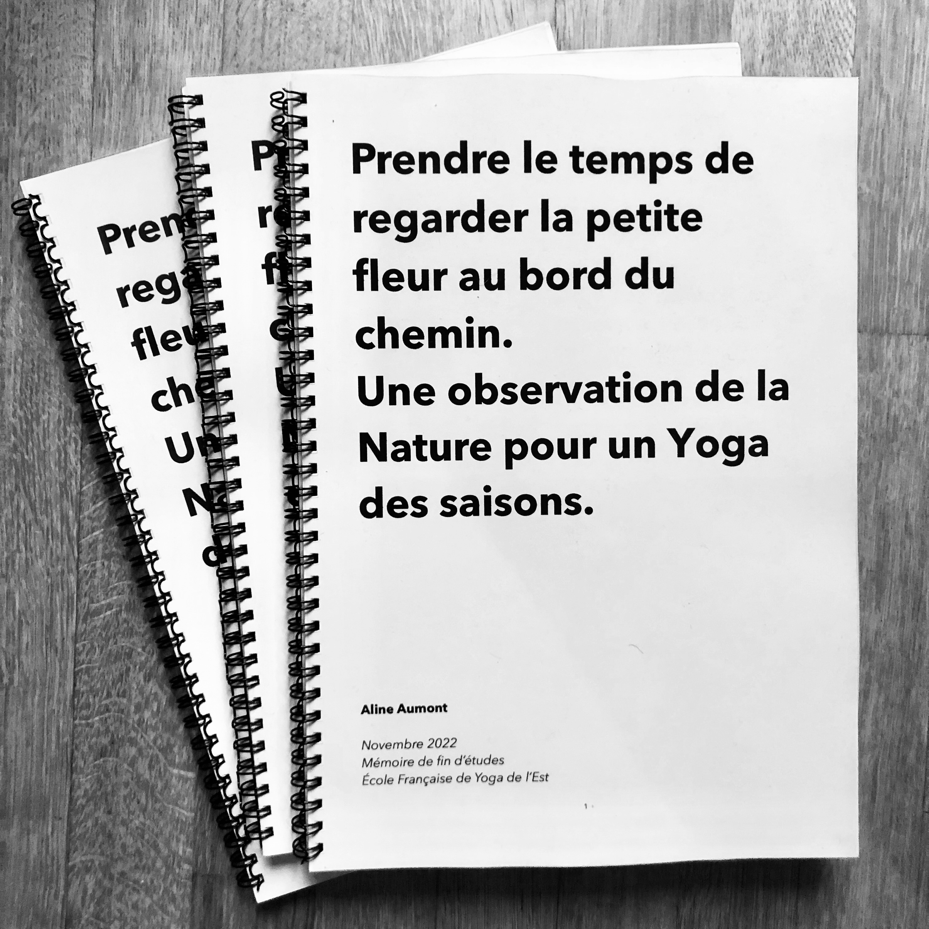 - Soutenance de mon mémoire de fin d’études – « Prendre le temps de regarder la petite fleur au bord du chemin. Une observation de la nature pour un Yoga des Saisons ».